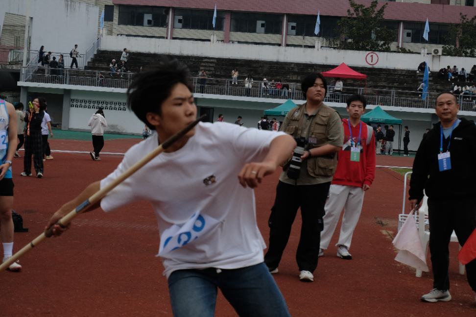 10月31日下午,南华大学运动场上,校园运动会首日下午赛事热力不减,男子标枪、女子跳远、男女子5000米等项目轮番上演,电气工程学院的运动员们以无畏之勇,续写着青春的壮丽诗篇。