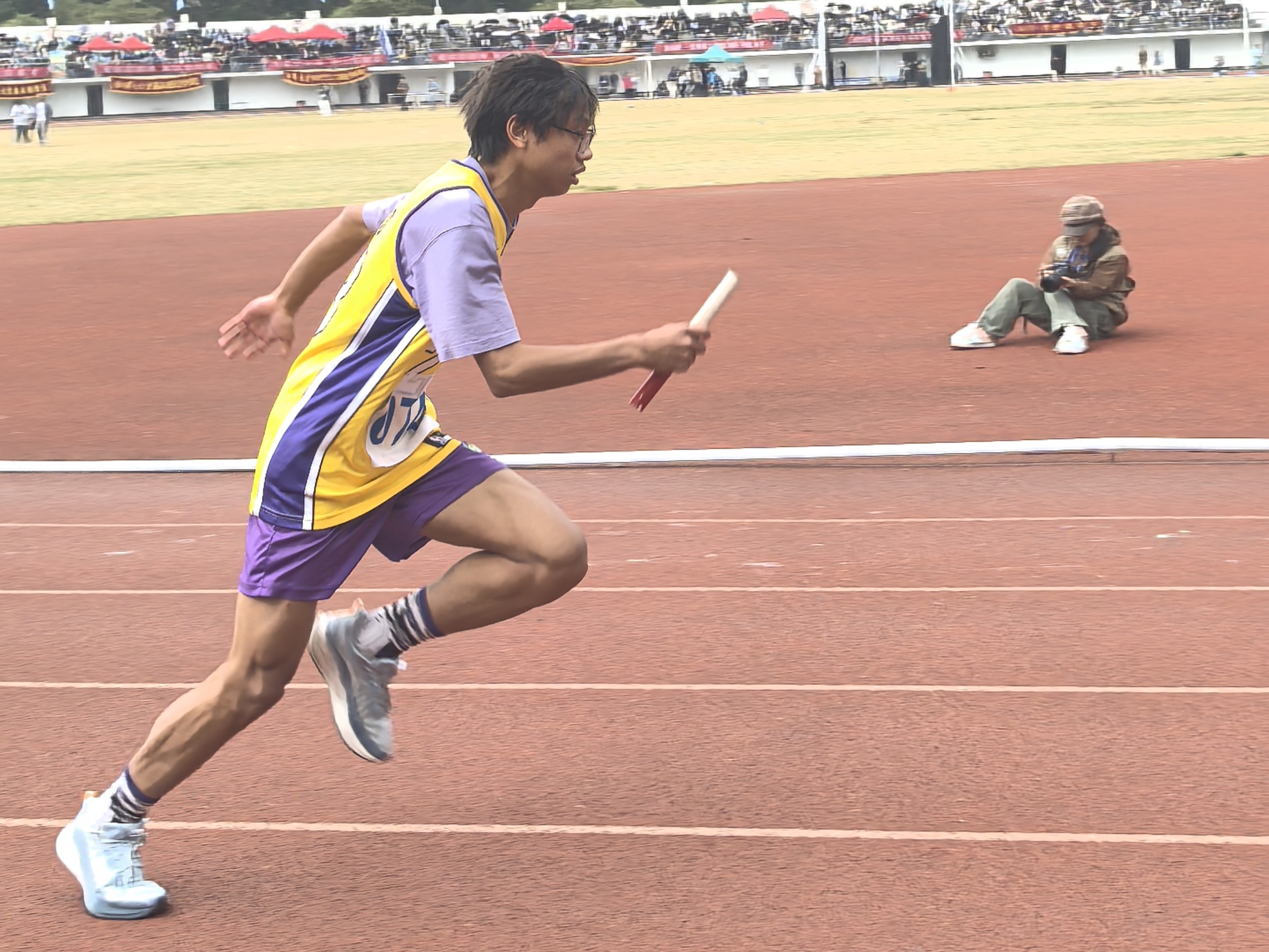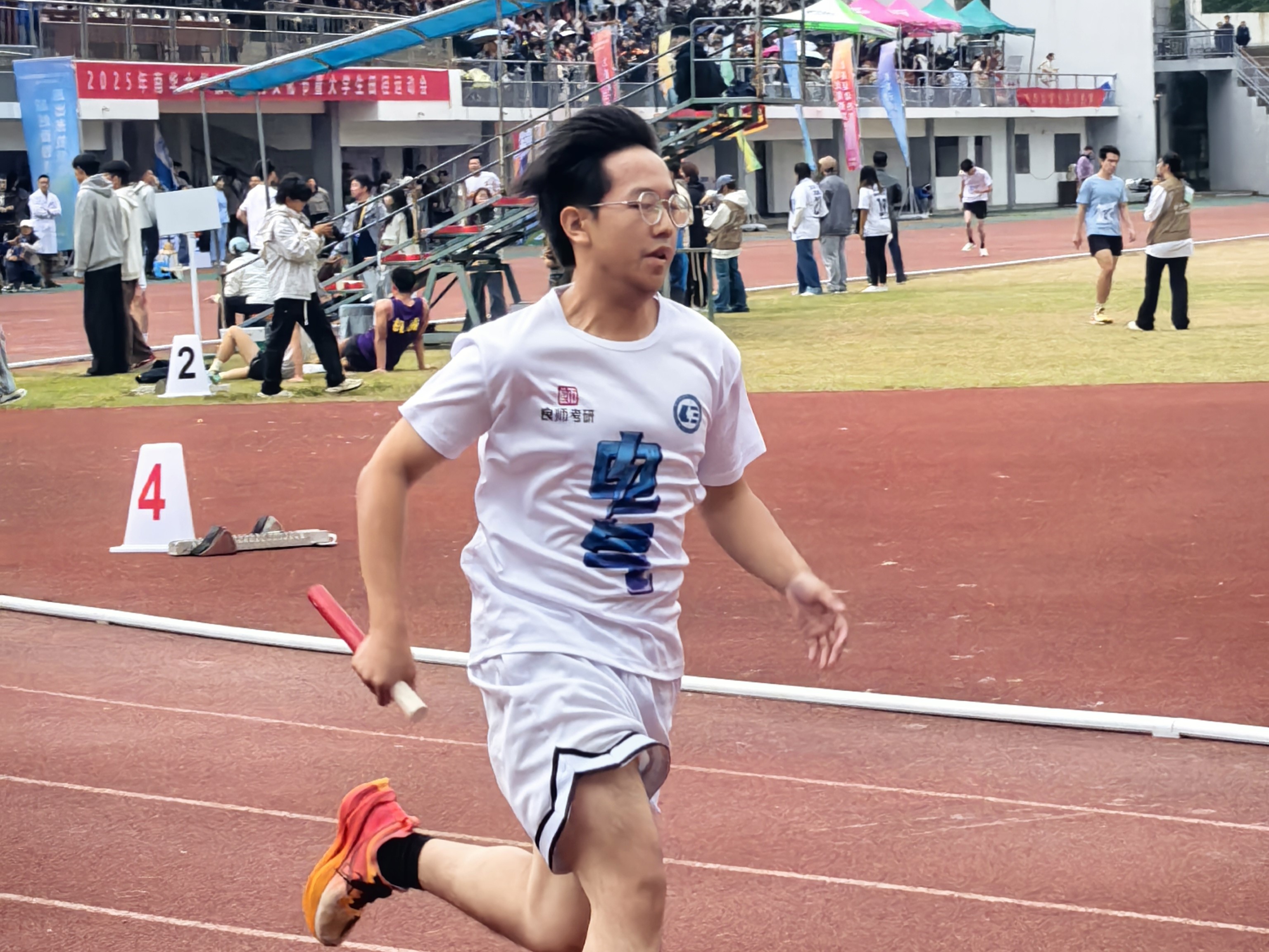 径赛决赛场上,备受关注的男子组4×400米接力预决赛中,电气工程学院代表队团结协作,顺利完成比赛。