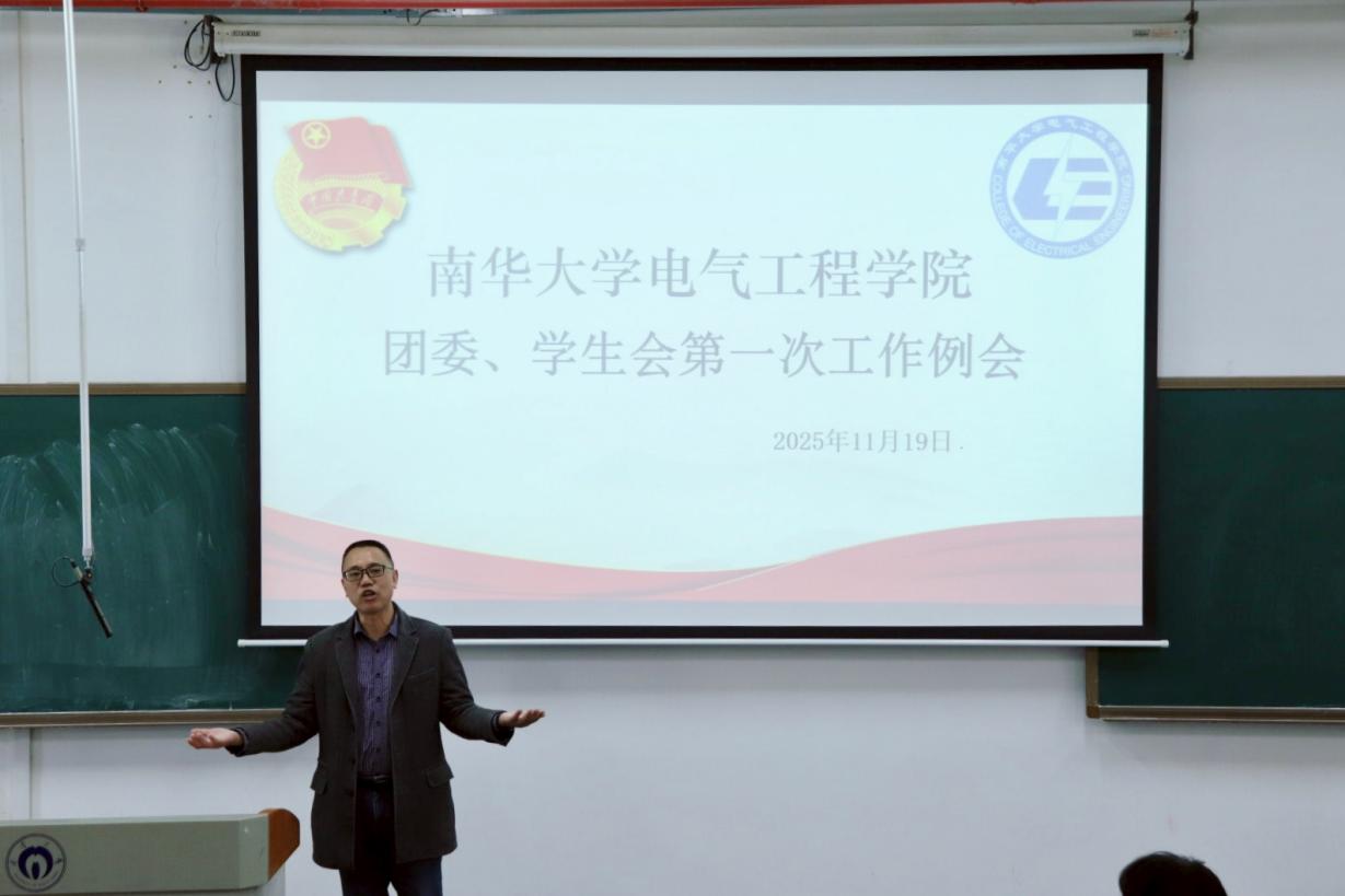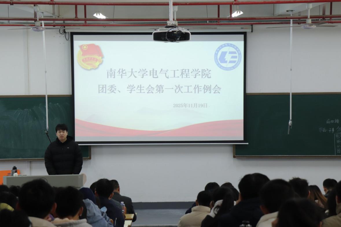 11月19日中午,南华大学电气工程学院第二十六届团委学生会第一次工作例会于雨母楼211教室顺利召开。学院党委副书记王国平出席。学院团委书记余胤璟、辅导员罗思涵,以及200余名电气工程学院第二十六届团学成员参与本次会议。会议由第二十六届团学会执行主席王泉霖主持。