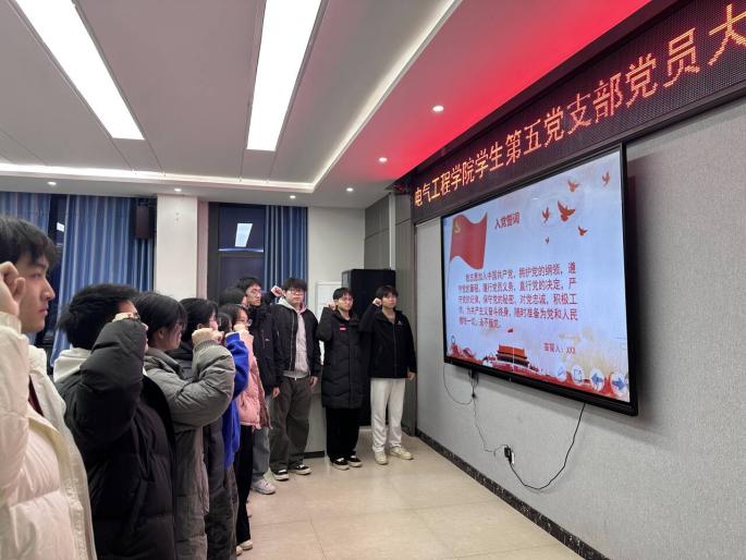 12月26日,电气工程学院学生第五党支部在崇业楼B301会议室召开党员发展与预备党员转正大会,顺利完成8名预备党员转正、10名发展对象接收为预备党员的工作。党支部书记王博、全体学生正式党员、预备党员及相关发展对象参加会议,会议由党支部副书记严楷主持。