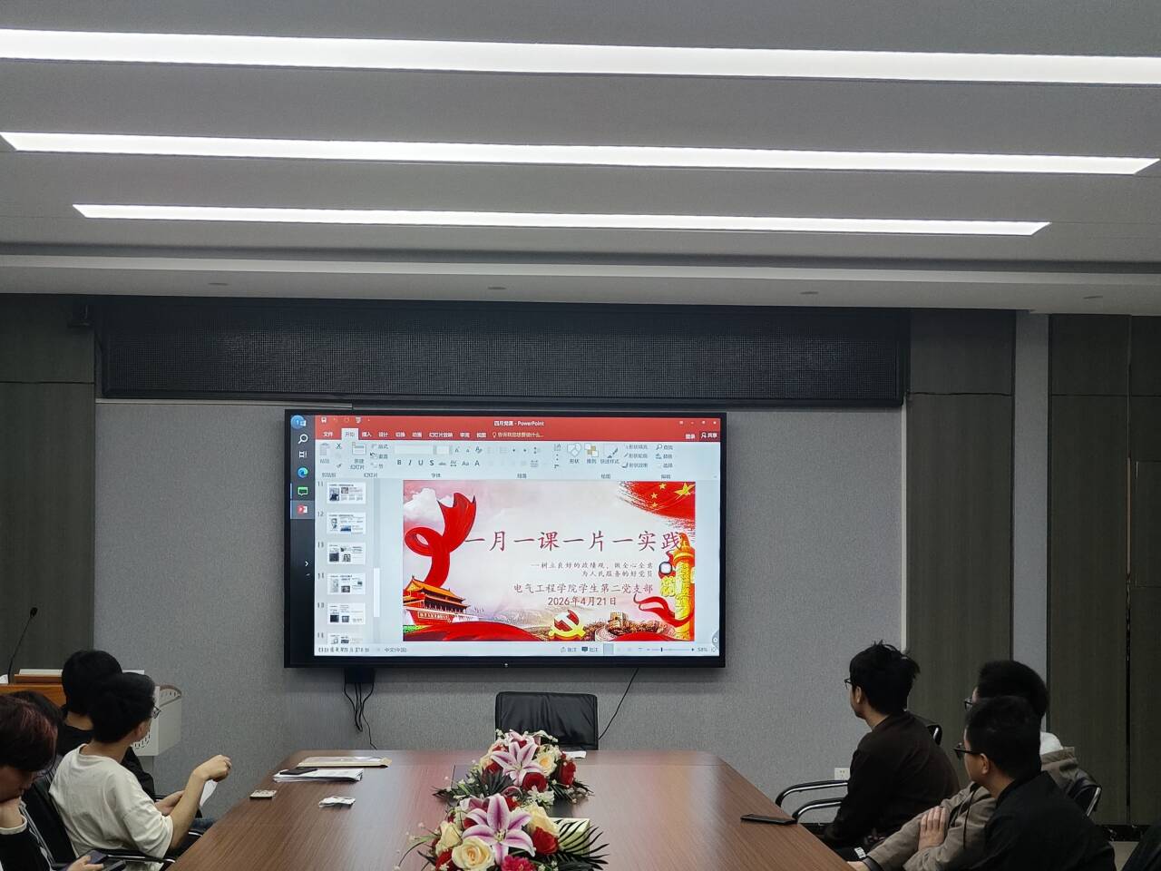 为深入学习贯彻习近平总书记关于树立和践行正确政绩观的重要论述,引导支部党员筑牢思想根基、强化实干担当,4月21日中午12点30分,电气工程学院学生第二党支部在崇业楼B301会议室组织召开以“树立和践行正确的政绩观,做全心全意为人民服务的好党员”为主题的四月份主题党日活动,支部全体学生党员参加,会议由支部纪检委员陆晨毅同志主持。