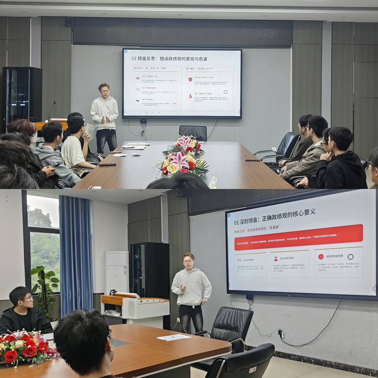 会上,陆晨毅同志围绕正确政绩观的核心要义、实践要求,结合学生党员的成长特点与专业学习实际,深入解读了树立和践行正确政绩观的重要意义,强调青年党员要始终牢记为民造福的根本宗旨,摒弃急功近利的错误思想,把个人成长融入学院发展和国家建设大局,在专业学习中锤炼本领,在服务同学中践行初心,以实干实绩彰显党员担当。